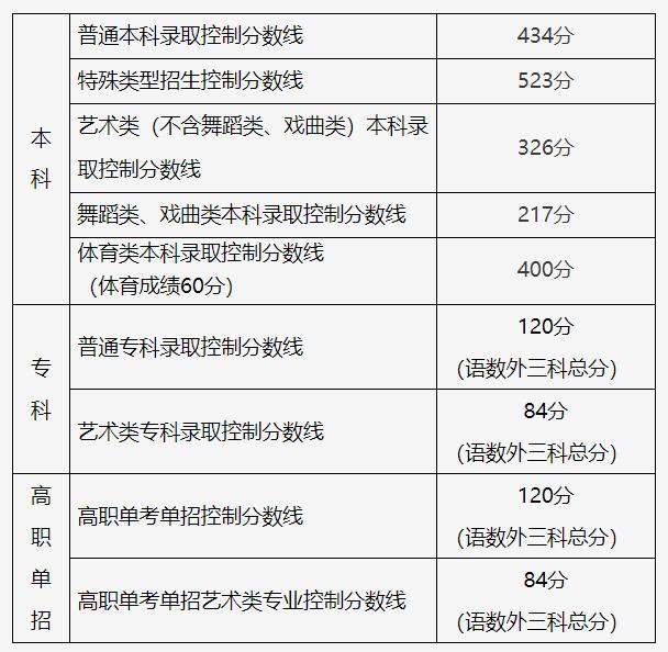 普通本科录取控制分数线:475分;