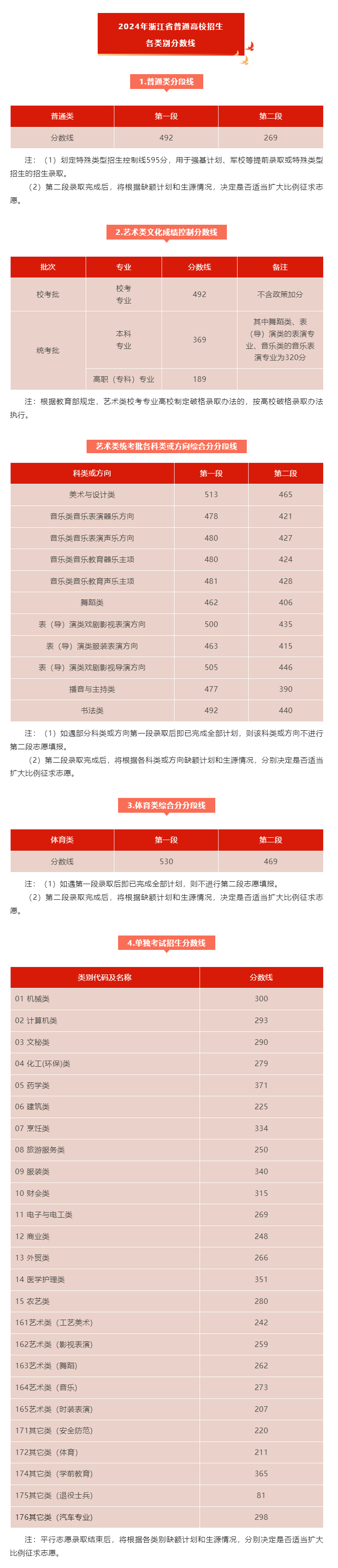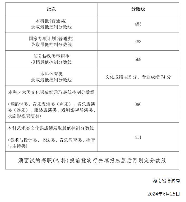 艺术体育类专业招生录取控制分数线另文公布。