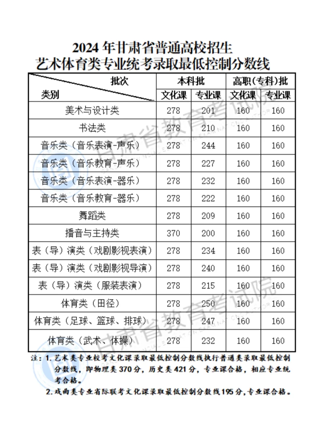 戏曲类:文化科总分300分,戏曲类专业省际联考须合格。