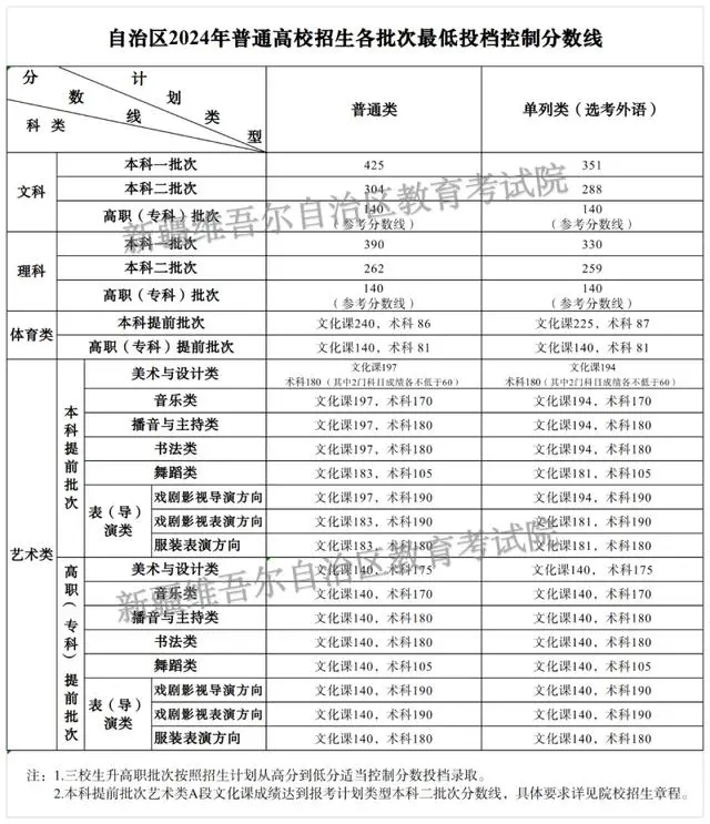 高职(专科)批均为220分。
